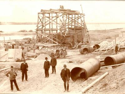 A fokozódó igények azonban szükségessé tették egy végleges budapesti vízmű létrehozását. Wein János sok előtanulmány és próbafúrás után a káposztásmegyeri Dunapartot ítélte olyan helynek, ahol a kavicsrétegek természetes szűrése biztosíthatja a kellő vízmennyiséget. Sok vita után, az 1892-es kolerajárványtól is nyomatékosítva végül a Közmunka Tanács elfogadta ezt a tervet. Az építkezés 1893 és 1904 között történt, Kajlinger Mihály tervei alapján. 1893-ra az üzemelés már beindulhatott a főtelep kútjaival, ehhez 1895-ben és 1898-ban Dunakeszi irányában és a Szentendrei-szigeten létesített kutak társultak. A főtelep szivattyúházai melletti kazánházak biztosították a gőzüzemű szivattyú-meghajtást. Ezeket csak az 1930-as évek elején cserélték le elektromos üzemre (tartalékul pedig diesel-motorokra).