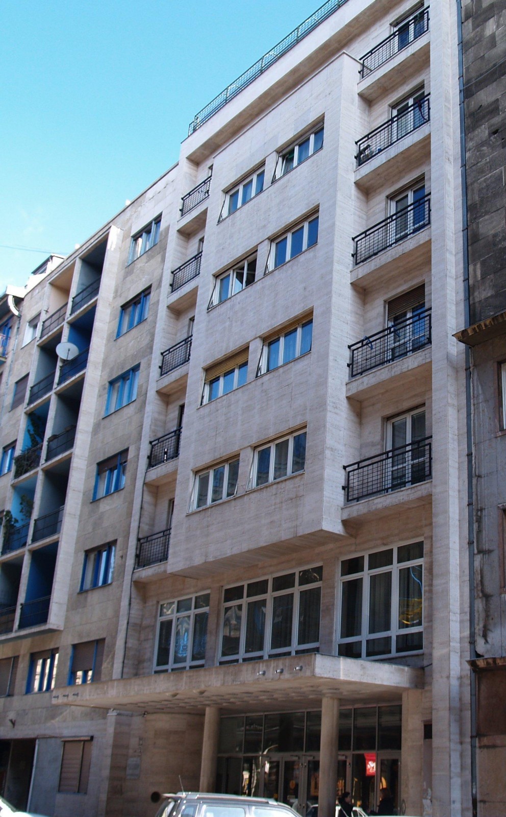 A Budapesti Kisipari Hitelintézet  Rt. székháza. Tervező: Jánszky Béla. Épült 1942-ben.