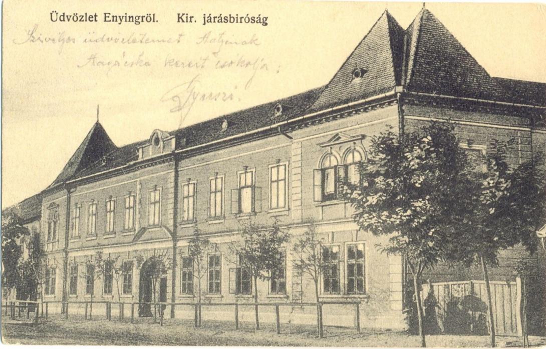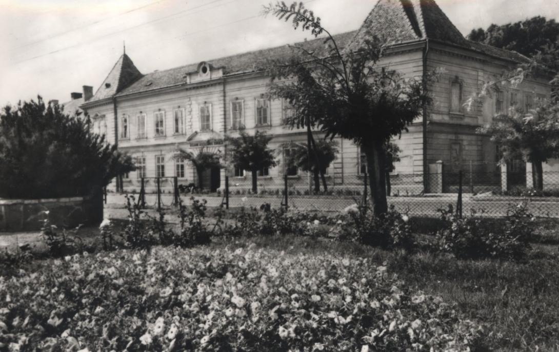 Bal oldali része "Civil Kaszinó" volt, a hátrább levő tornyos rész az 1960-as évekig Járási Biróság épülete, utána napjainkig iskola.
