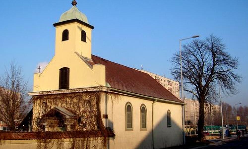 A templom őse, a "Kőkápolna", 1865-ben Ziegler József építőmester vezetésével épült fel, közadakozásból. Ezt az eseményt a templom falába süllyesztett márványtábla ma is büszkén hirdeti.