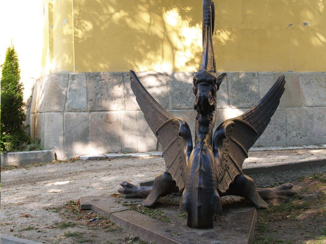 Az öntöttvas sárkányszobor az óbudai Schmidt-kastély (kiscelli kastély, Budapesti Történeti Múzeum) bejáratát őrzi. Akkor került ide, amikor  Schmidt Miksa vette meg és alakította kastéllyá, környezetét csodálatos parkká. Korábban Pest legelső kiépített Duna-partszakaszát díszítette. Ez a partszakasz a Lánchídtól északra és délre létesült, a Duna-Gőzhajózási Társaság építtette 1853-58-ban.
