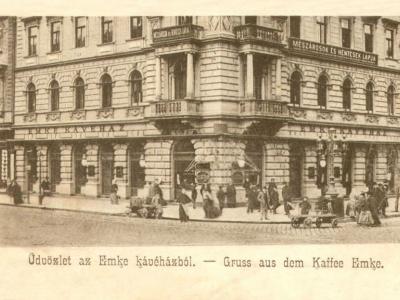 Az EMKE kávéház 1894-ben nyitott meg egy frissen felépült magas bérház földszintjén, amelynek bérleti jogát egy gyakorlott vendéglős, Wassermann Jónás vette meg. Nevét az intézmény az 1885-ben alakult Erdélyi Magyar Közművelődési Egyesületről kapta. Wassermann lelkes tagja volt az egyesületnek, komoly pénzt fizetett a névhasználat jogáért – nem egyedüliként, hiszen EMKE nevű kávéház működött Marosvásárhelyt és Nagyváradon is. A kávéházban igen gazdag könyv, újság és lexikongyűjtemény állt rendelkezésre, azonban ami igazán megkülönböztette a többi hasonló helytől, az a cigányzene volt. Wassermann Jónás ugyanis elsőrangú prímásokat és zenekarokat szerződtetett, és ezt a hagyományt fia, Wassermann Mór is követte, aki apja 1901-ben bekövetkezett halála után vette át a kávéház vezetését. A fiatalabb Wassermann az első világháború után komoly beruházásokba fogott: cukrászdát hozott létre, bárt rendezett be, amely a 20-as években újdonságnak számított magas pultjával és bárszékeivel. A kávéházhoz kötődő hírességek között mindenképpen meg kell említeni József Attilát, aki 1920-ban kenyeresfiúként dolgozott itt. 1945-ben a kávéház teljesen kiégett, ősszel azonban újra megnyitotta kapuit. 1956-ban az épületet ismét rommá lőtték, az EMKE nagyobb kárt szenvedett, mint a II. világháború alatt. A hely öt éven át tartó felújítás után 1961-ben nyitott meg újra, ám akkor már csírájában sem hasonlított a régi kávéházra. Az épületben a rendszerváltás után egy ideig sörbár üzemelt, jelenleg pedig bankfiókok találhatók a legendás EMKE kávéház helyén.