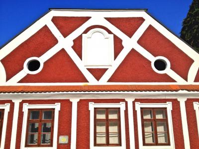 Tiszttartói háznak épült, 1770 körül. Homlokzatai höbörcsös vakolatúak, simított vakolat architektúrával. Az utcai homlokzatát egykor freskók díszítették, ma már csak a keretét láthatjuk.