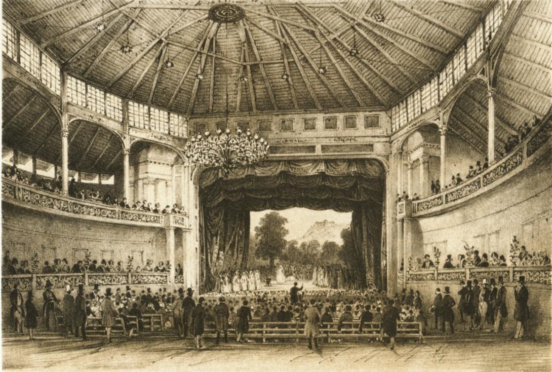 A budai Horváth-kert északnyugati részén (a Fabrik és a Johannes Gasse, később az Alagút és a Szent János utcák, jelenleg az Alagút utca és a Krisztina körút sarkán) Huber Ignác színigazgató építtette 1842-ben a kezdetben Arénára keresztelt Budai Színkört (mellette díszesen berendezett vendéglővel),   Nötzl Fülöp német színigazgató  társulata számára (amely már 1837-től játszott a Várszínházban, 1838-tól pedig nyaranta a Fő utcai Osztrák Császárhoz címzett fogadóban). Az 1200 férőhelyes teátrumot Ságody Ferenc (más források szerint József) tervezte. A fából készült épületben a nyári hónapokban már a következő évtől játszottak német vándortársulatok. A színház 1844-ben Michel János pesti lakatosmester kezébe került, 1859-ben Buda városa vette át,  1888-tól 1915-ig Krecsányi Ignác társulata játszott benne, majd Sebestyén Géza lett az igazgató, aki 1925-ben felújíttatta a tűzveszélyessé vált épületet.