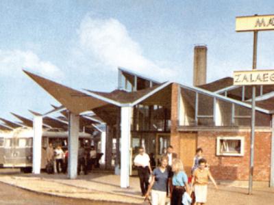 Ma is buszpályaudvarként működik. Háttérben a Városi Sportcsarnok.